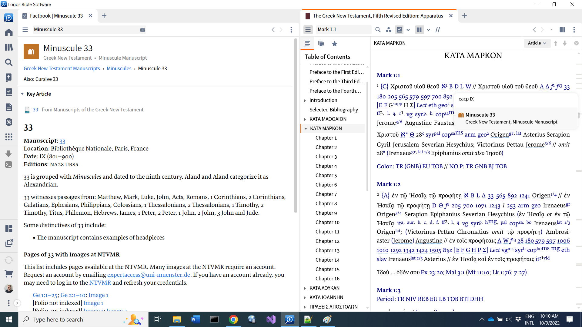 Now, this is where it gets REALLY COOL if you remember some of the work I did for Logos 9. That work involved supporting NT, LXX, and Hebrew Bible manuscripts in Factbook.